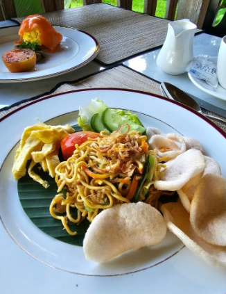 - 밥이 진짜 맛있음 (맛집 인정): 여기 음식 평이 정말 좋아요. 특히 나시고랭, 미고랭 같은 인도네시아 현지식 퀄리티가 상당해요. 조식도 미리 만들어놓은 뷔페 음식이 아니라, 주문하면 그때그때 요리해 주는 단품 메뉴(A la carte) 방식이라 따뜻하고 맛있어요. 메뉴판에 있는 거 다 시켜도 되는 '무제한 주문' 시스템인 것도 비밀!